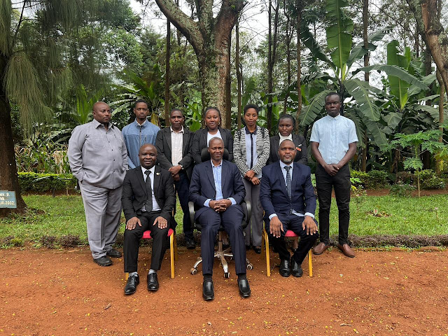 Jaji Mfawidhi wa Mahakama Kuu ya Tanzania, Kanda ya Kigoma, Mhe. Augustine Rwizile akiwa katika picha ya pamoja na Watumishi wa Mahakama ya Wilaya Kibondo. Kulia ni Mhe. Fadhili Mbelwa na kushoto ni Mhe. Maila Makonya.