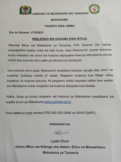 WANANCHI KUANZA KUTOA MREJESHO WA UBORA WA HUDUMA ZA MAHAKAMA